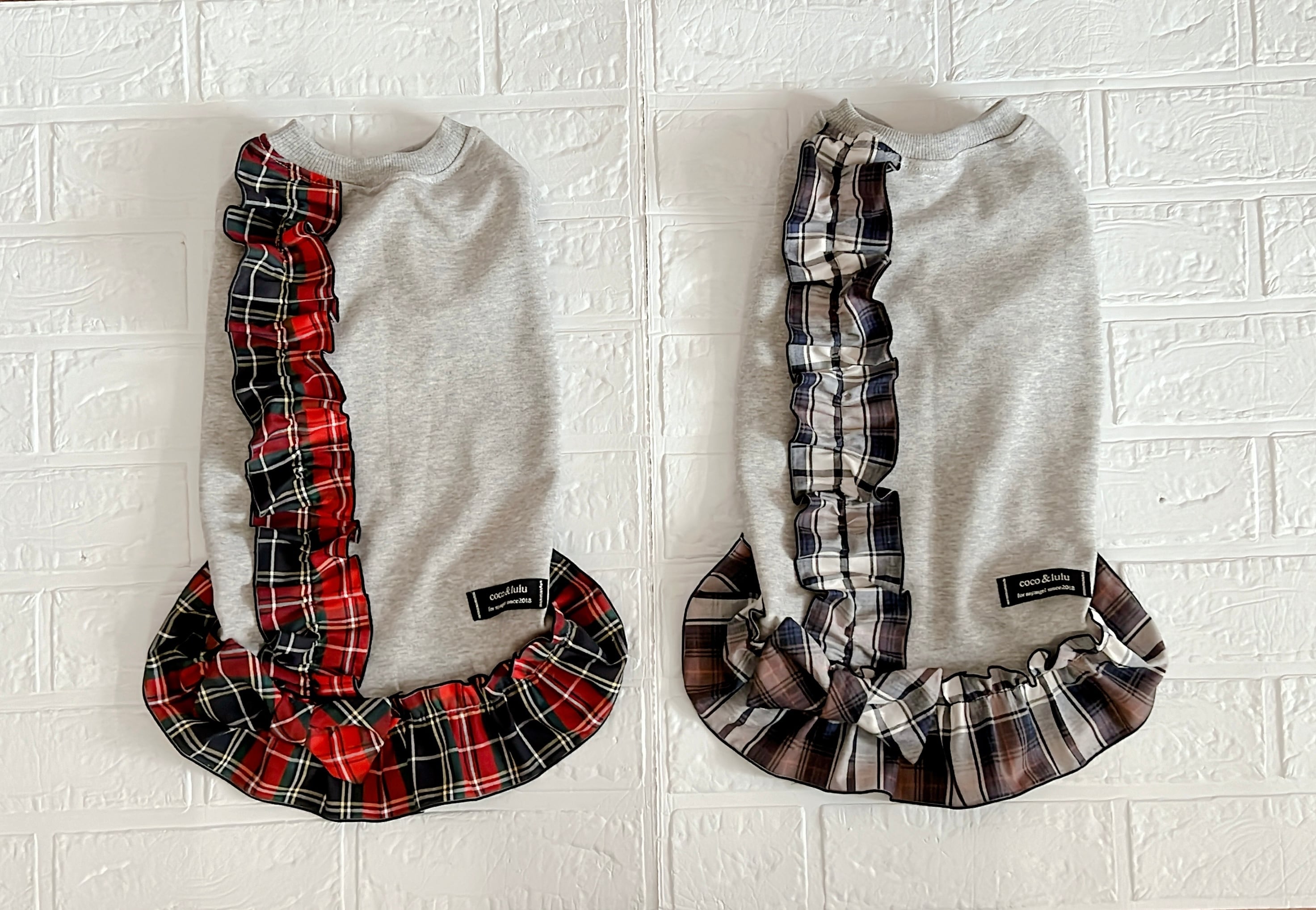 【完成品・即納】ブリティッシュチェックワンピース 赤系Sサイズ